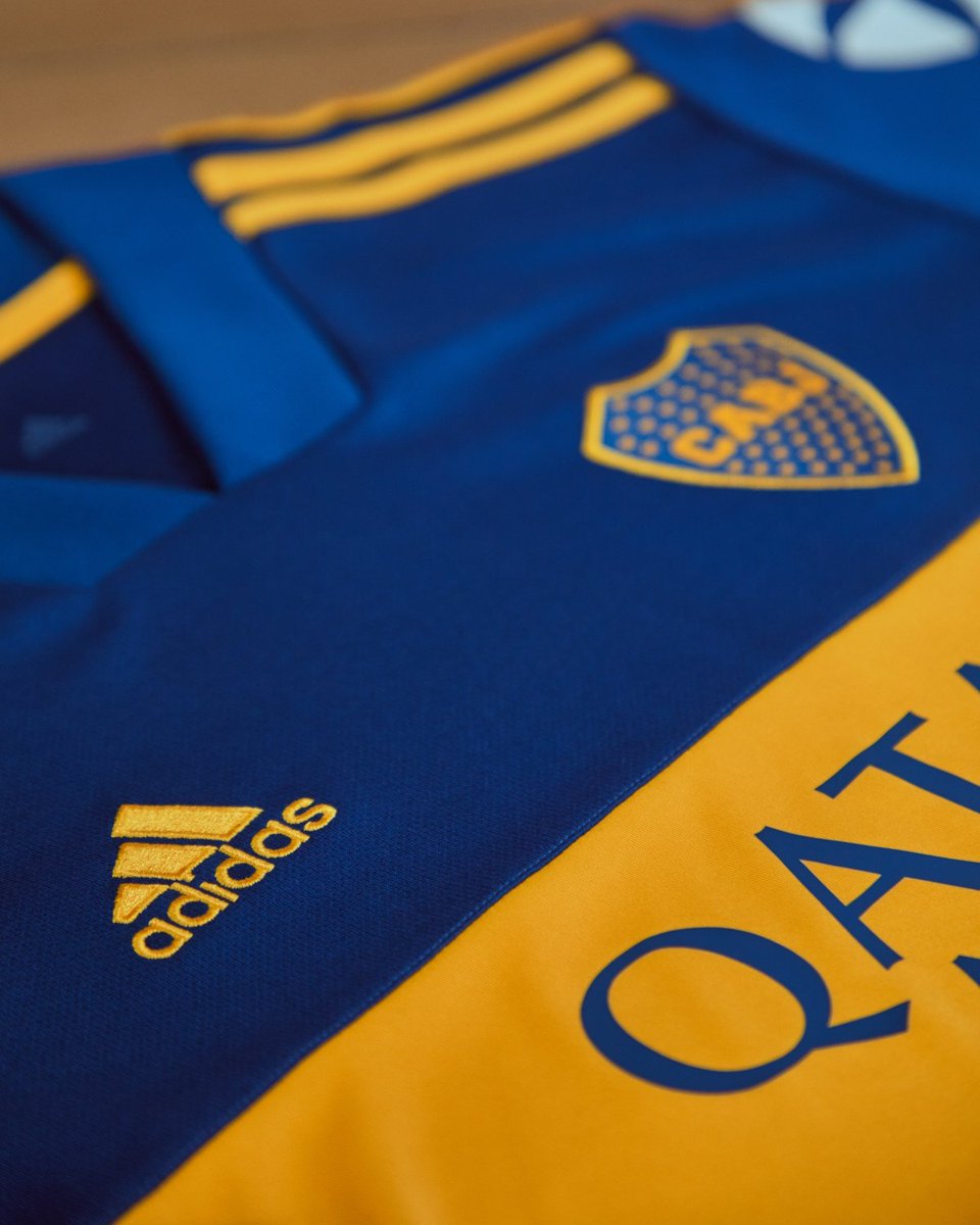 Las tres tiras, en los hombros, aparecen en amarillo. Por los colores y las proporciones, esta camiseta recuerda a la del año 1993, la última que Adidas le diseñó a Boca. El pantalón y las medias serán en azul.